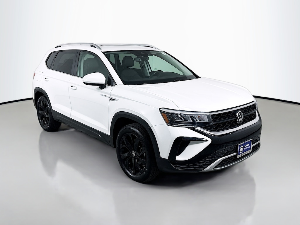Certified. 2022 Volkswagen Taos Pure White 1.5T SE Certified, Call now, Local Trade, 18" Black Alloy Wheels, Alloy wheels, Automatic Rain-Sensing Front Wipers, Heated Steering Wheel, Light Assist (High Beam Control), Panoramic Sunroof Package, SE Convenience Package. CARFAX One-Owner. AWD 7-Speed DSG Automatic with Tiptronic 1.5L I4 Turbocharged DOHC 16V LEV3-SULEV30 158hp