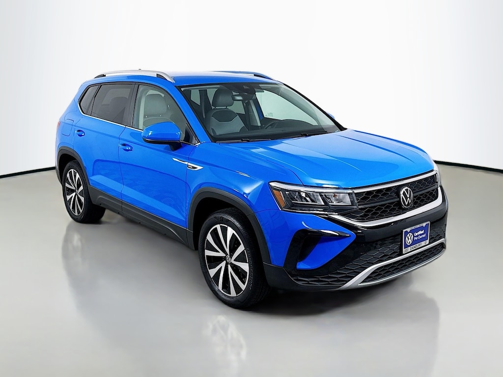 Certified. 2023 Volkswagen Taos Cornflower Blue 1.5T SE Certified, Call now, Local Trade. Clean CARFAX. CARFAX One-Owner. AWD 7-Speed DSG Automatic with Tiptronic 1.5L I4 Turbocharged DOHC 16V LEV3-SULEV30 158hp