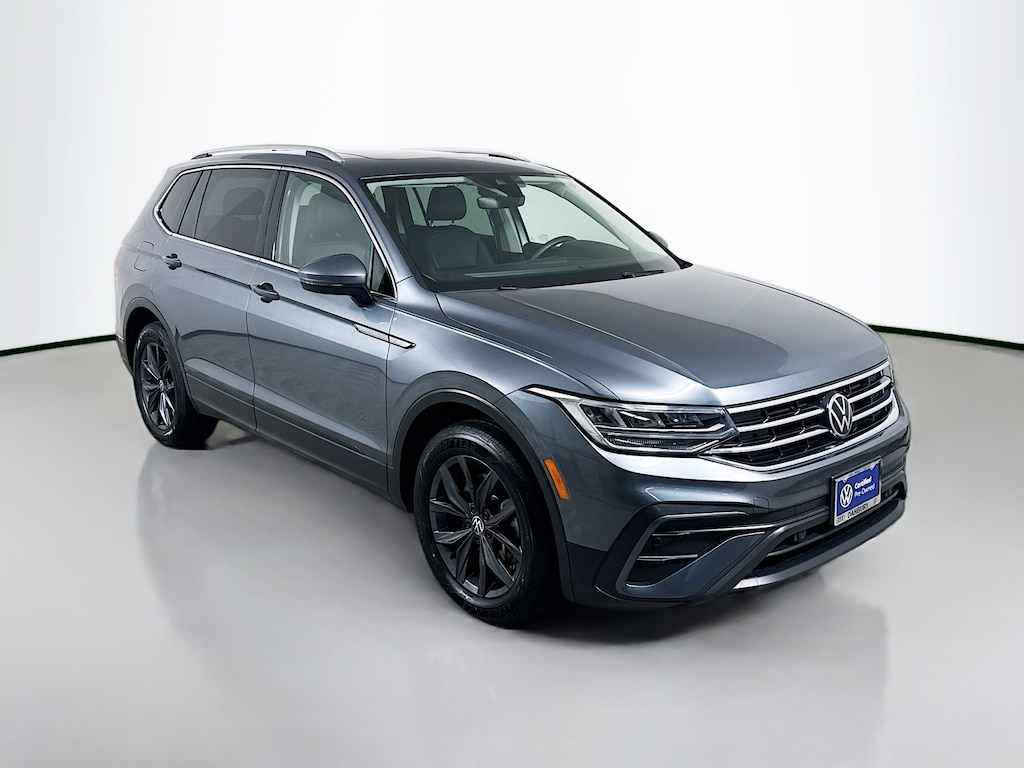 Certified. 2023 Volkswagen Tiguan Platinum Gray MetallicSDS 2.0T SE Certified, Call now, Local Trade, AWD, Panoramic Sunroof Package. Clean CARFAX. CARFAX One-Owner. AWD 8-Speed Automatic with Tiptronic 2.0L TSI DOHC