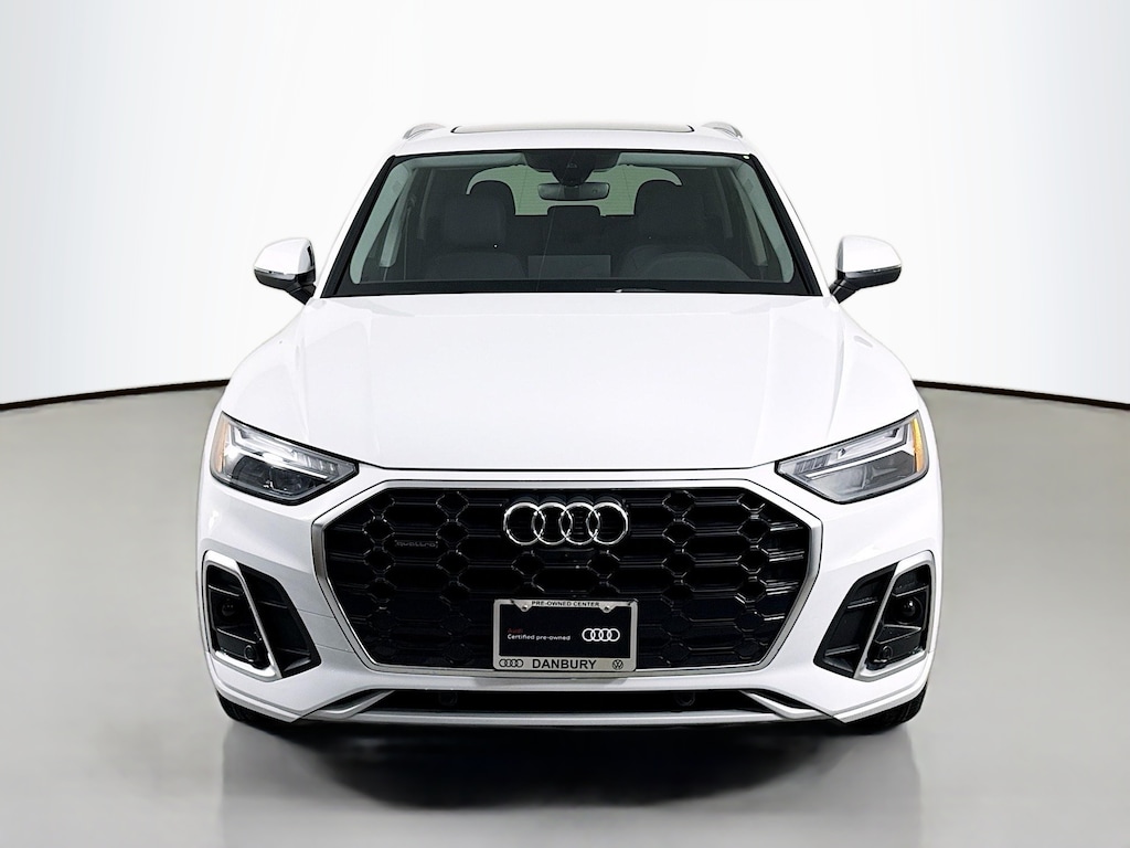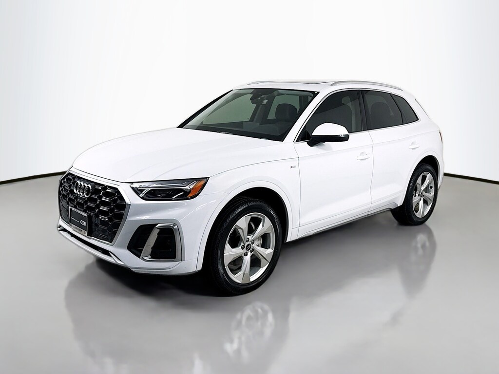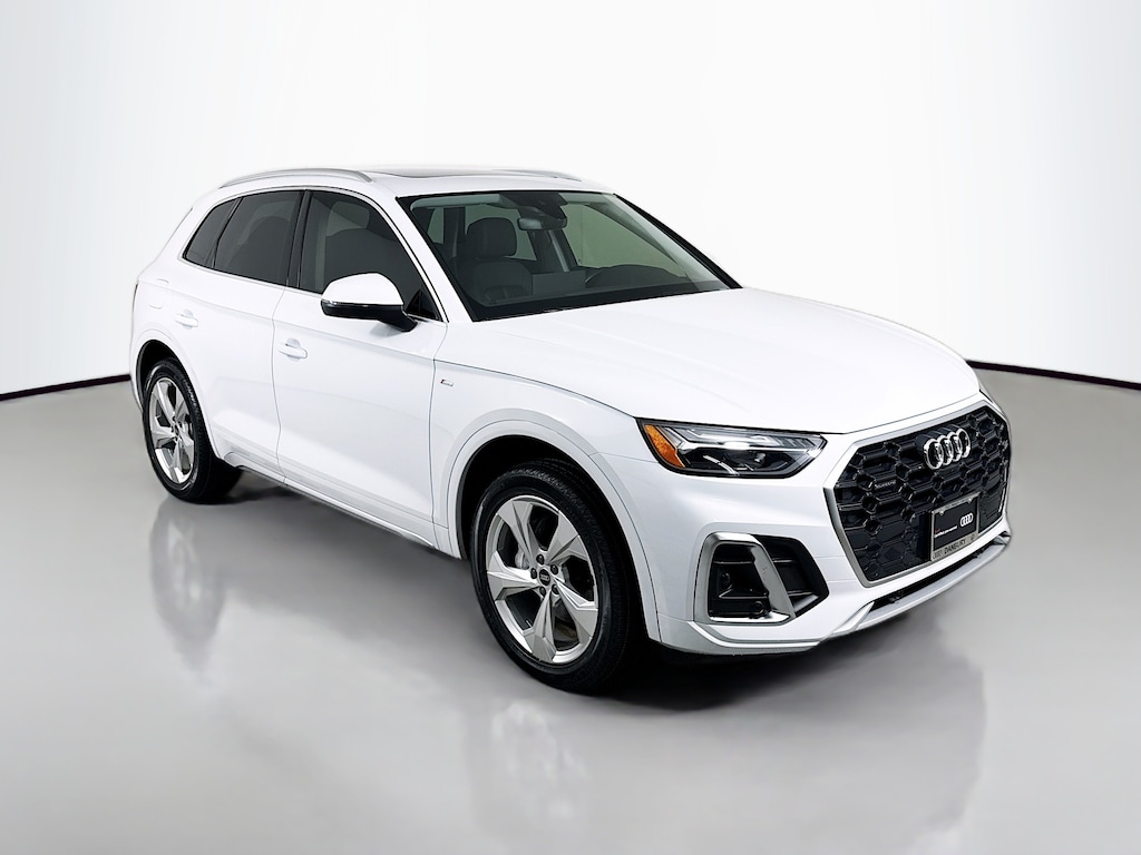 Certified. 2022 Audi Q5 Glacier White Metallic 45 S line Premium Plus Certified, Call now, Low miles, Local Trade, Black Leather, ABS brakes, Adaptive Cruise Control w/Traffic Jam Assist, Alloy wheels, Audi Active Lane Assist, Audi Advanced Key, Audi Connect PRIME & PLUS, Audi Phone Box, Audi Virtual Cockpit Plus, Auto-Dimming Power Folding Exterior Mirrors, Bang & Olufsen Sound System w/3D Sound, Compass, Convenience Package, Driver Seat Memory, Electronic Stability Control, Front dual zone A/C, Hands-On Detection Steering Wheel, Heated door mirrors, Heated front seats, Heated Steering Wheel, Illuminated entry, Leatherette Covered Center Console & Door Armrests, Low tire pressure warning, MMI Navigation Plus, Navigation Package, Panoramic Sunroof, Power Adjustable Steering Column, Power Liftgate, Premium Plus Package, Remote keyless entry, SiriusXM All Access Service, Top View Camera System, Traction control, Wheels: 20" 5-Arm Design. CARFAX One-Owner. quattro 7-Speed Automatic S tronic 2.0L Turbocharged