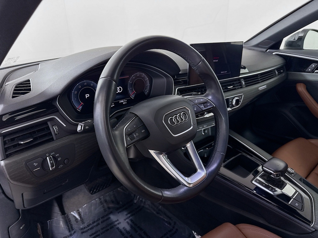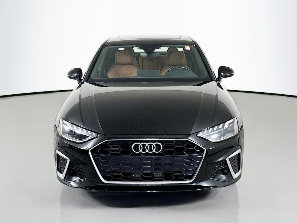 Certified. 2023 Audi A4 Mythos Black Metallic 45 S line Premium Plus Certified, Call now, Local Trade, 7-Speed Automatic S tronic, quattro, Okapi Brown Leather, 2 Rear USB Charge Ports, Adaptive Cruise Control, Alarm System w/Motion Sensor, Audi Active Lane Assist, Audi Advanced Key, Audi Phone Box, Audi Side Assist w/Pre Sense Rear, Audi Virtual Cockpit Plus, Auto-Dimming Exterior Mirrors w/Memory, Bang & Olufsen Sound System w/3D Sound, Convenience Package, Hands-On Detection Steering Wheel, Heated Steering Wheel, Leatherette Covered Center Console & Door Armrests, Memory for Driver's Seat, Parking System Plus, Power Folding Exterior Mirrors, Premium Plus Package, SiriusXM w/360L, Top View Camera System, Traffic Jam Assist. Clean CARFAX. CARFAX One-Owner. quattro 7-Speed Automatic S tronic 2.0L TFSI