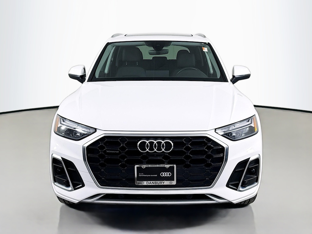 Certified. 2023 Audi Q5 Ibis White 45 S line Premium Plus Certified, Call now, Local Trade, Black Leather, ABS brakes, Alloy wheels, Audi Active Lane Assist, Audi Advanced Key, Audi Connect PLUS, Audi Virtual Cockpit Plus, Auto-Dimming Power Folding Exterior Mirrors, Bang & Olufsen Sound System w/3D Sound, Compass, Convenience Package, Driver Seat Memory, Electronic Stability Control, Front dual zone A/C, Hands-On Detection Steering Wheel, Heated door mirrors, Heated front seats, Heated Steering Wheel, Illuminated entry, Leatherette Covered Center Console & Door Armrests, Low tire pressure warning, MMI Navigation Plus, Navigation Package, Panoramic Sunroof, Power Adjustable Steering Column, Power Liftgate, Premium Plus Package, Remote keyless entry, SiriusXM w/360L, Top View Camera System, Traction control, Traffic Jam Assist, Wheels: 19" 5-Double-Arm Design Bi-Color Finish. Clean CARFAX. CARFAX One-Owner. quattro 7-Speed Automatic S tronic 2.0L Turbocharged
