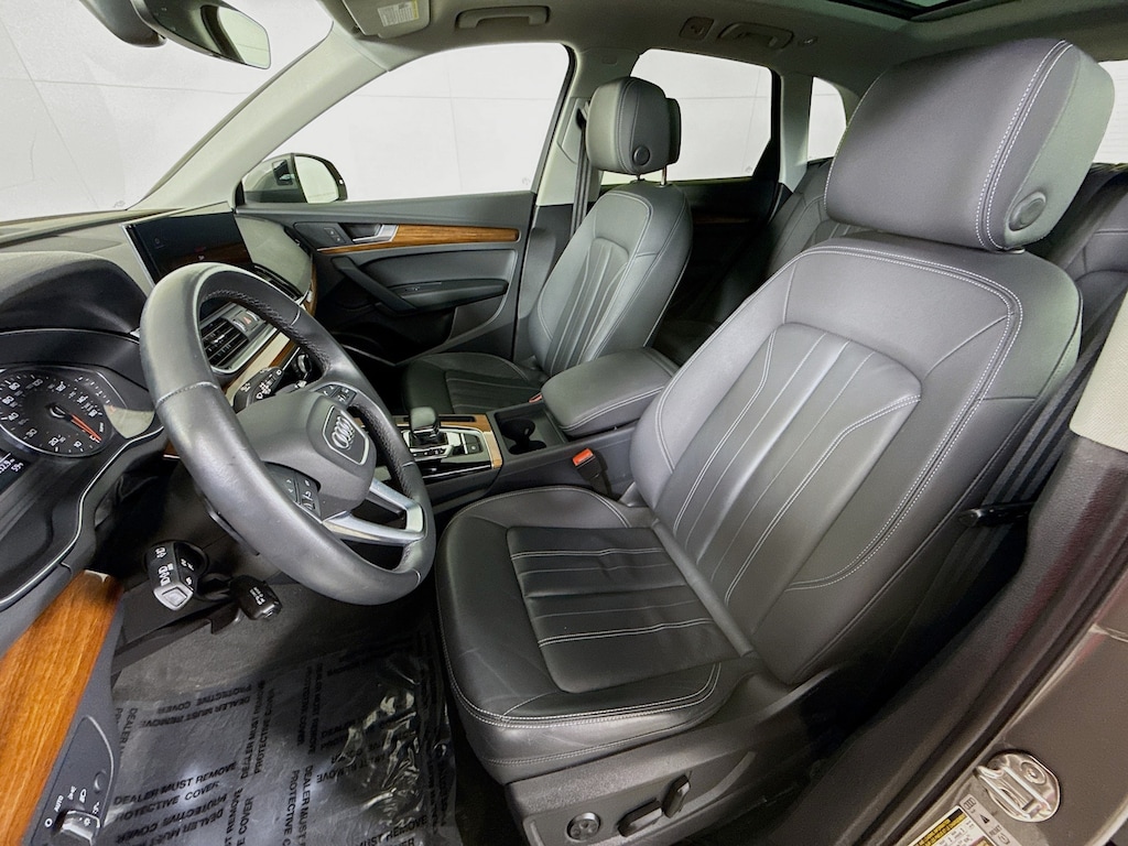 Certified. 2023 Audi Q5 Chronos Gray Metallic 45 S line Premium Certified, Call now, Local Trade, Black Leather, Alloy wheels, Audi Advanced Key, Auto-Dimming Power Folding Exterior Mirrors, Convenience Package, Driver Seat Memory, Heated Steering Wheel, Panoramic Sunroof, SiriusXM w/360L, Trailer Hitch. CARFAX One-Owner. quattro 7-Speed Automatic S tronic 2.0L Turbocharged