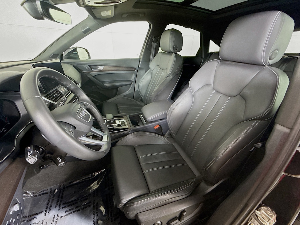 Certified. 2023 Audi Q5 Mythos Black Metallic 45 S line Prestige Certified, Call now, Local Trade, Black Leather, ABS brakes, Alloy wheels, Audi Active Lane Assist, Audi Advanced Key, Audi Connect PLUS, Audi Phone Box, Audi Virtual Cockpit Plus, Auto-Dimming Power Folding Exterior Mirrors, Bang & Olufsen Sound System w/3D Sound, Black Exterior Trim, Black Optic Package, Compass, Convenience Package, Driver Seat Memory, Dual Pane Acoustic Glass for Front Side Windows, Electronic Stability Control, Front dual zone A/C, Hands-On Detection Steering Wheel, Head-Up Display, Heated & Cooled Front Cup Holder, Heated door mirrors, Heated front seats, Heated Rear Seats, Heated Steering Wheel, Illuminated entry, Leatherette Covered Center Console & Door Armrests, LED Interior Lighting Plus Package, Low tire pressure warning, Manual Rear Side Window Sunshades, Matrix-Design LED Headlights w/Headlight Washers, MMI Navigation Plus, Navigation Package, Park Assist, Power Adjustable Steering Column, Power Liftgate, Prestige Package, Remote keyless entry, SiriusXM w/360L, Top View Camera System, Traction control, Traffic Jam Assist, Traffic Sign Recognition, Ventilated Front Sport Seats, Warm Weather Package, Wheels: 20" 5-Arm Cutter Design, Bi-Color Finish. Clean CARFAX. CARFAX One-Owner. quattro 7-Speed Automatic S tronic 2.0L Turbocharged
