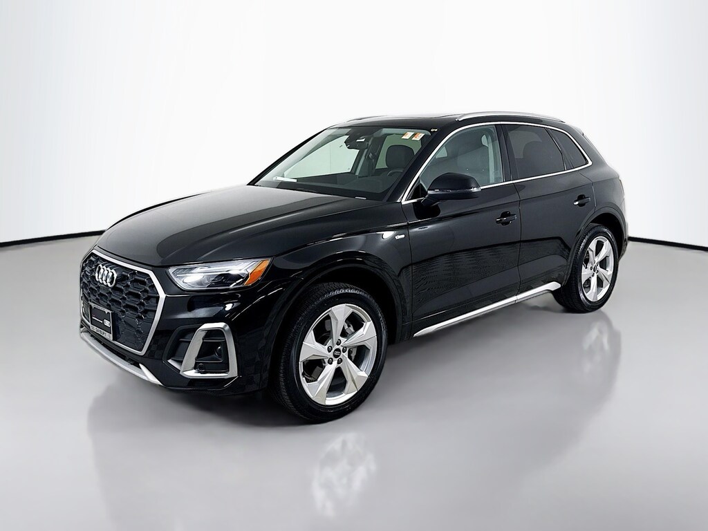 Certified. 2023 Audi Q5 Mythos Black Metallic 45 S line Premium Plus Certified, Call now, Local Trade, Black Leather, ABS brakes, Alloy wheels, Audi Active Lane Assist, Audi Advanced Key, Audi Connect PLUS, Audi Virtual Cockpit Plus, Auto-Dimming Power Folding Exterior Mirrors, Bang & Olufsen Sound System w/3D Sound, Compass, Convenience Package, Driver Seat Memory, Electronic Stability Control, Front dual zone A/C, Hands-On Detection Steering Wheel, Heated door mirrors, Heated front seats, Heated Steering Wheel, Illuminated entry, Leatherette Covered Center Console & Door Armrests, Low tire pressure warning, MMI Navigation Plus, Navigation Package, Panoramic Sunroof, Power Adjustable Steering Column, Power Liftgate, Premium Plus Package, Remote keyless entry, SiriusXM w/360L, Top View Camera System, Traction control, Traffic Jam Assist, Wheels: 20" 5-Arm Design. Clean CARFAX. CARFAX One-Owner. quattro 7-Speed Automatic S tronic 2.0L Turbocharged