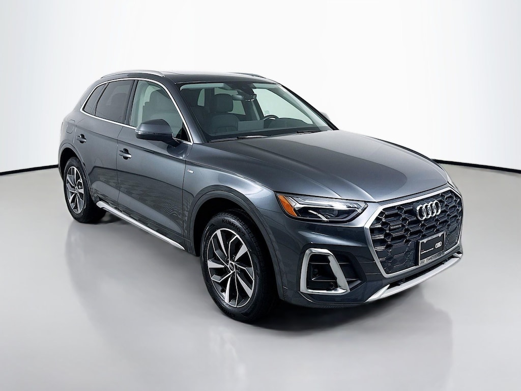 Certified. 2023 Audi Q5 Daytona Gray Pearl Effect 45 S line Premium Certified, Call now, Local Trade, Black Leather, Alloy wheels, Audi Advanced Key, Auto-Dimming Power Folding Exterior Mirrors, Convenience Package, Driver Seat Memory, Heated Steering Wheel, Panoramic Sunroof, SiriusXM w/360L, Wheels: 19" 5-Double-Arm Design Bi-Color Finish. Clean CARFAX. CARFAX One-Owner. quattro 7-Speed Automatic S tronic 2.0L Turbocharged