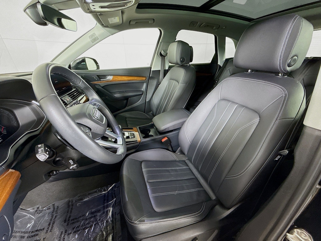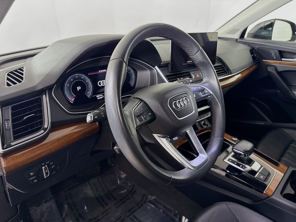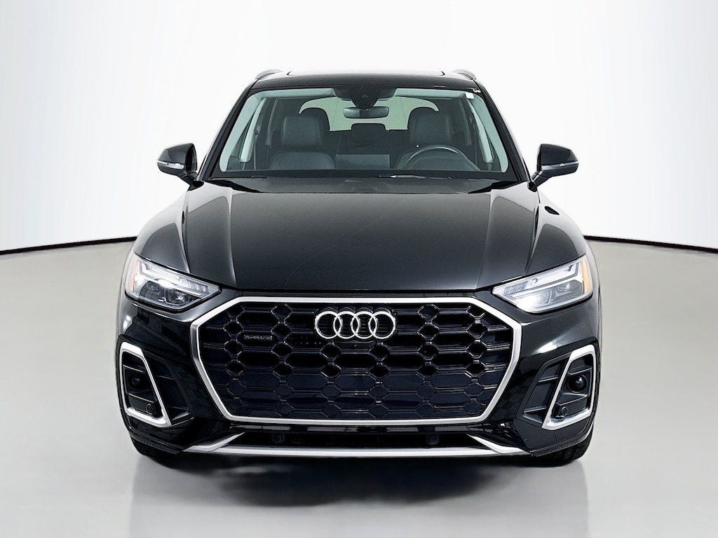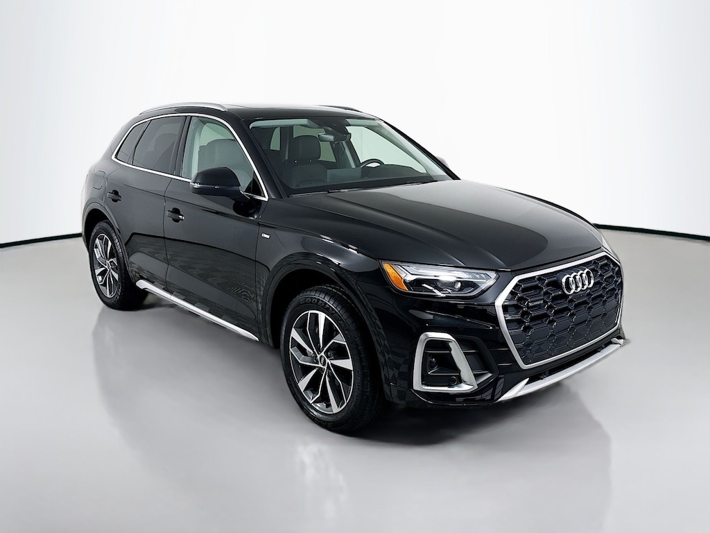 Certified. 2023 Audi Q5 Mythos Black Metallic 45 S line Premium Plus Certified, Call now, Local Trade, Black Leather, ABS brakes, Alloy wheels, Audi Active Lane Assist, Audi Advanced Key, Audi Connect PLUS, Audi Virtual Cockpit Plus, Auto-Dimming Power Folding Exterior Mirrors, Bang & Olufsen Sound System w/3D Sound, Compass, Convenience Package, Driver Seat Memory, Electronic Stability Control, Front dual zone A/C, Hands-On Detection Steering Wheel, Heated door mirrors, Heated front seats, Heated Steering Wheel, Illuminated entry, Leatherette Covered Center Console & Door Armrests, Low tire pressure warning, MMI Navigation Plus, Navigation Package, Panoramic Sunroof, Power Adjustable Steering Column, Power Liftgate, Premium Plus Package, Remote keyless entry, SiriusXM w/360L, Top View Camera System, Traction control, Traffic Jam Assist, Wheels: 19" 5-Double-Arm Design Bi-Color Finish. Clean CARFAX. CARFAX One-Owner. quattro 7-Speed Automatic S tronic 2.0L Turbocharged