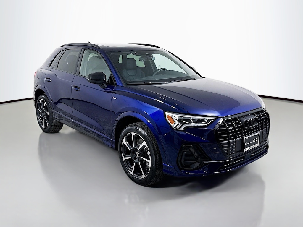 Certified. 2025 Audi Q3 Navarra Blue Metallic Premium Plus Certified, Like new, Save money, Call now, Alarm with Motion Sensor, Audi Advanced Key, Auto-Dimming Power-Folding Exterior Mirrors, Auto-Dimming Rear-View Mirror, Black Exterior Mirrors, Black Exterior Trim and Badges, Black Optic Plus Package, Black Roof Rails, Carbon Inlays, Convenience Package, Dinamica Upper Inlay and Door Armrests in Steel Gray, Driver Seat Memory, Garage Door Opener (HomeLink), LED Interior Lighting Package, LED Interior Lighting Plus Package, Premium Plus Package, SiriusXM with 360L (3 Months Trial), SONOS Premium Sound System with 3D Sound, Sport Front Bucket Seats with S Embossing, Stainless Steel Pedal Caps, Top View Camera System, Wheels: 19" 7-Spoke-Rotor-Design, Wireless Phone Charging Pad. Clean CARFAX. CARFAX One-Owner. quattro 8-Speed Automatic with Tiptronic 2.0L 4-Cylinder TFSI