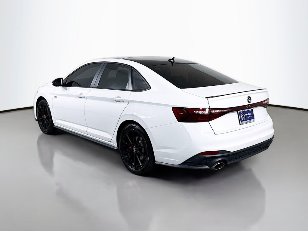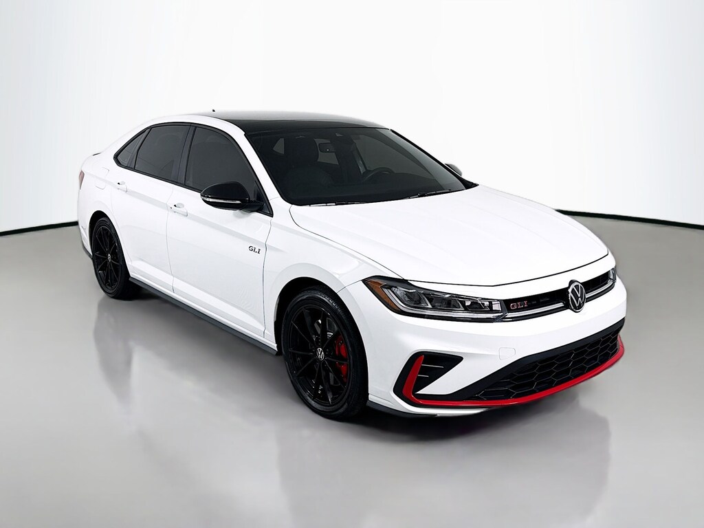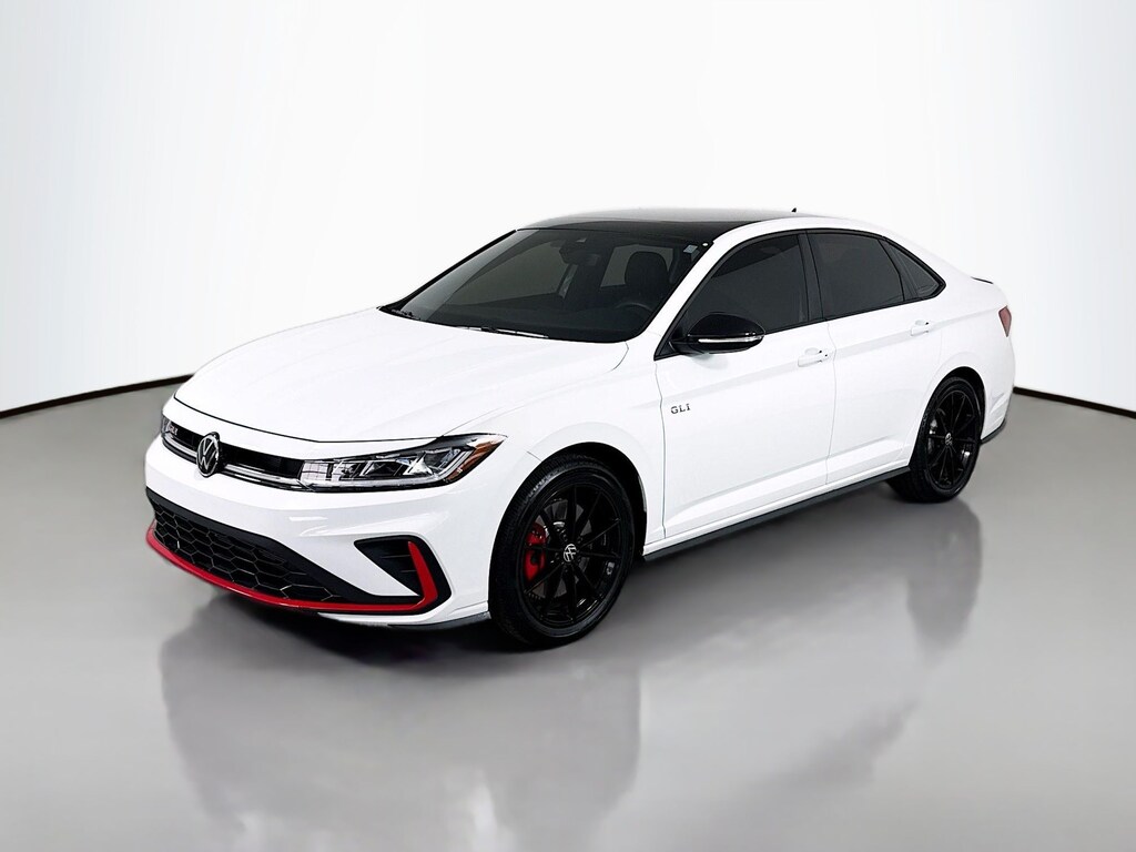 Certified. 2025 Volkswagen Jetta GLI Pure WhiteSEW 2.0T Autobahn Certified, Like new, Call now, Local Trade, 18" black painted alloy wheels, deep black pearl roof, deep black pearl side mirror caps, GLI black package. Clean CARFAX. CARFAX One-Owner. FWD Automatic with Tiptronic 2.0L TSI DOHC